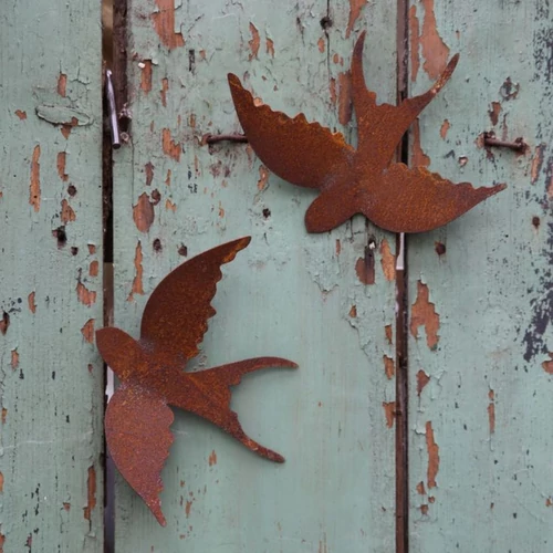 Ez a rozsdás fecske egyedi, vintage stílust hoz bármilyen fa felületre. Csavaros kialakításának köszönhetően könnyedén becsavarozható fába, fa burkolatba, ajtóra vagy bármilyen más felületre, így egyszerűen varázsolhatsz különleges hangulatot környezetedbe. A patinás rozsdás megjelenés még egyedibbé teszi ezt a díszt, amely tökéletes választás lehet kertbe, teraszra vagy akár belső térbe is.