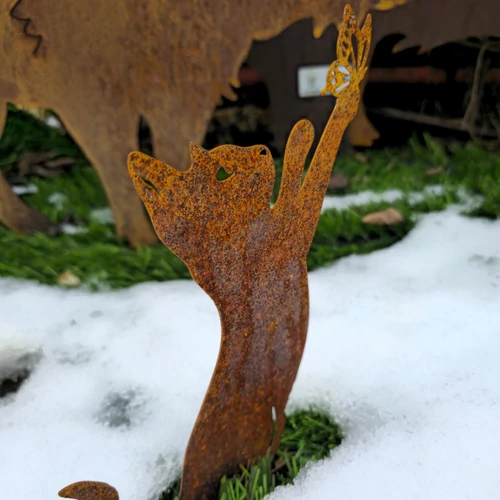 A rozsdás fém anyagnak és a részletes kidolgozásnak köszönhetően ezek a sziluettek tökéletesen illenek kertbe, teraszra, vagy akár beltéri dekorációként is. Bájos és természetközeli megjelenésükkel bármely helyszín díszei lehetnek.