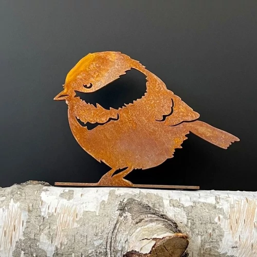 Tartósság: Időjárásálló Madár Művészet – rozsdás fém anyaga ellenáll az elemeknek, így hosszú távon kültéren tartható.
