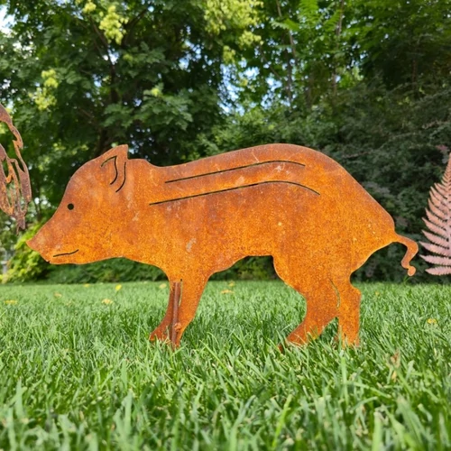Ez a kölyök vaddisznót formázó rozsdás acél sziluett természetközeli bájt és játékos hangulatot visz a kertbe. Kiválóan illeszkedik Cottage Garden és rusztikus kertdekor stílushoz, miközben egyszerű, mégis elegáns dísze lehet bármely kerti környezetnek.